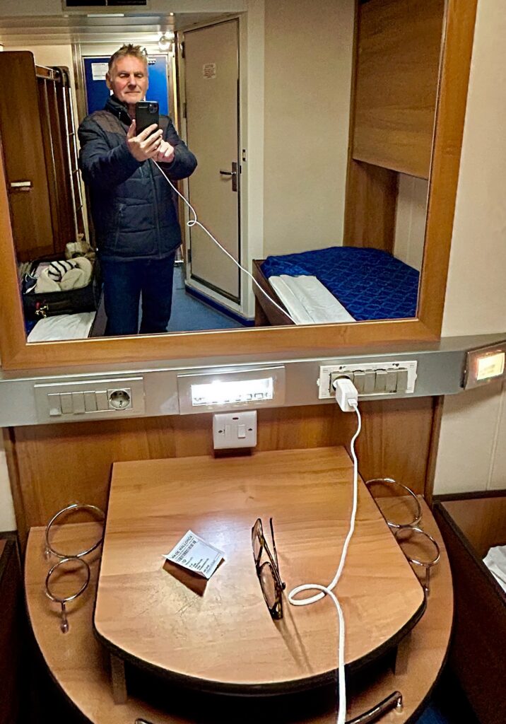 Nach drei Tagen Autofahrt endlich auf der Fähre. Abfahrt der Fähre von Barcelona um 21.30. Ankunft auf Mallorca um 6.30. Diesmal eine Kabine ohne Fenster. Einsparung von 25€.