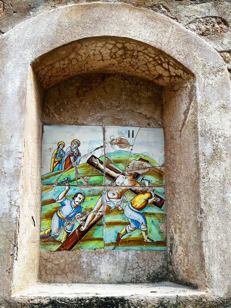 Der Weg zum Strand von Lido Tarquinia. Man spürte das Sommerfeeling mit Sonnencreme und Liegen und lebhaftem Strandleben. Was wir wirklich gesehen haben – leere Strände und keinen, der den Startschuss zum Saisonbeginn gegeben hat. Einer war schon da, die Planierung des Strandes läuft wohl planmäßig an.Fahrt hoch zum 10 km entfernten Hauptort Tarquinia. Die Stadt von 16500 Einwohnern war im Mittelalter eine wichtige etruskische Stadtrepublik.Der Bau von Eigentumswohnungen ist nicht nur in Berlin Standardgeworden.Für dieses Gebäude z. B. sind Eigentumswohnungen geplant. In der Altstadt stehen viele Geschäfte leer und die Ausstrahlung des Ortes fanden wir nicht sehr aufbauend.So sehen viele Häuser in der gesamten Stadt aus.Der Priester besucht Kranke zu Hause. Seine Weihrauchlampe ist immer dabei.